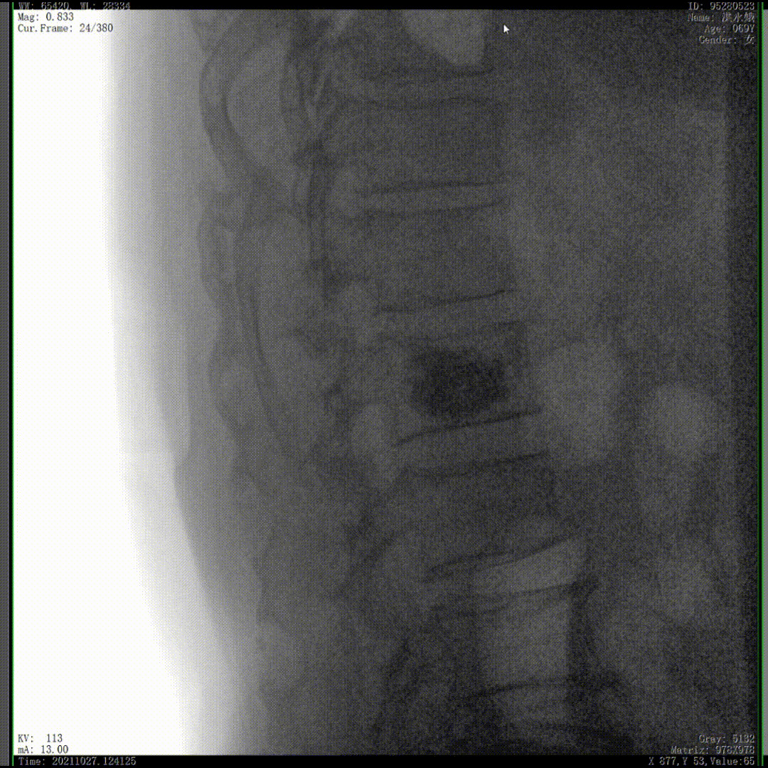 我們完成了椎體成形術以后,在二維的正側位影像上還不能看清骨水泥的滲漏情況,通過三維影像就可以360°的觀察骨水泥在椎體里到底是怎么彌散的。如果當時我們判斷出來質量不好,可能還需要進行翻修,這是在二維影像上不能看到的。