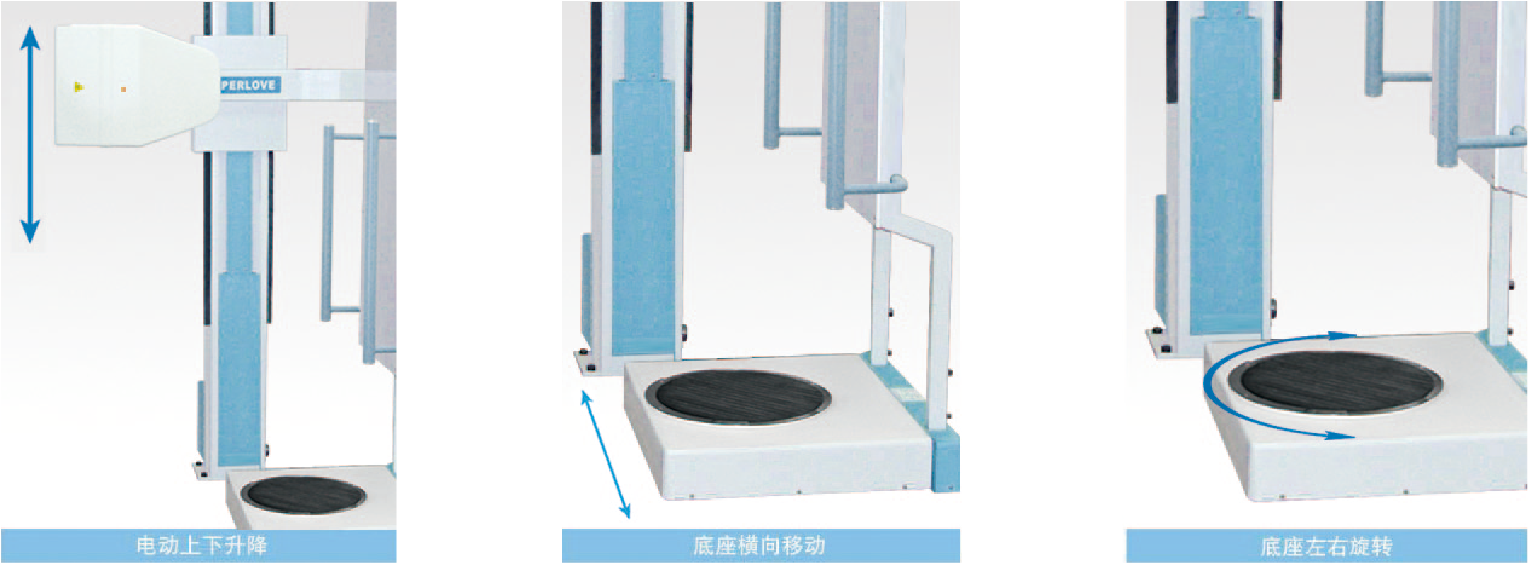 1、 電動上下升降、電動橫向移動、電動旋轉的功能,真正實現機動人不動的方式,使用方便、可靠。